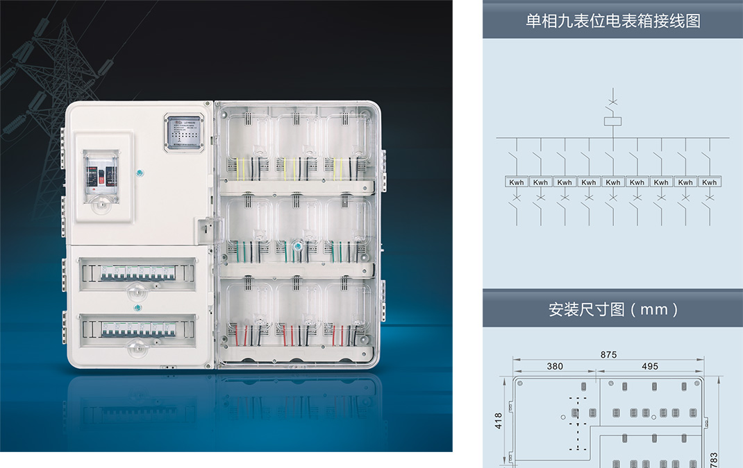 電表箱生產(chǎn)廠家-浙江南騰電氣有限公司研發(fā)的NT系列透明塑料電表箱,采用進(jìn)口聚碳酸酯(PC)和阻燃ABS工程塑料制成。具有抗沖擊、抗老化、耐腐蝕、透明度高、抗紫外線、安裝方便等優(yōu)點,并且具有用電安全保護(hù),用戶分離控制,數(shù)據(jù)采集, 防盜電等功能。產(chǎn)品適合安裝電子式、機(jī)械式、智能IC卡預(yù)付式、智能多費率式電表。南騰NT系列透明塑料電表箱自推出市場以來,憑借其完美的設(shè)計理念,在電表箱行業(yè)遙遙領(lǐng)先。