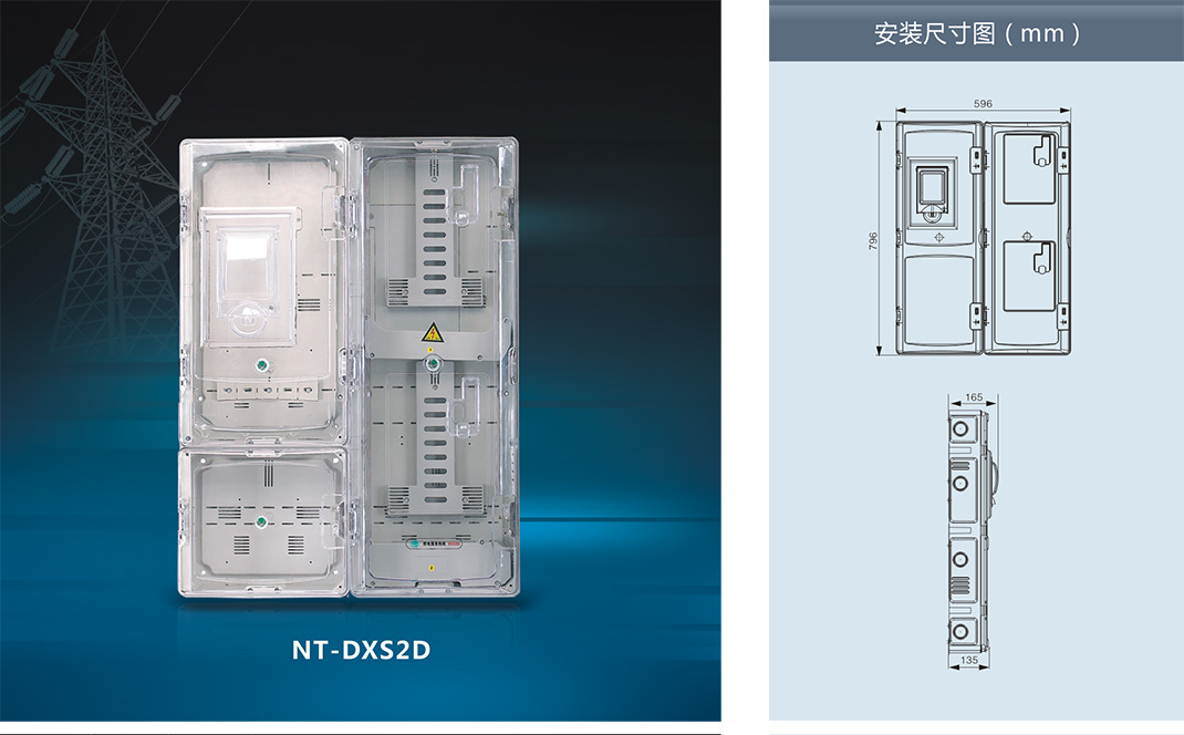 ,采用進口聚碳酸酯(PC)和阻燃ABS工程塑料制成。具有抗沖擊、抗老化、耐腐蝕、透明度高、抗紫外線、安裝方便等優(yōu)點,并且具有用電安全保護,用戶分離控制,數據采集, 防盜電等功能。產品適合安裝電子式、機械式、智能IC卡預付式、智能多費率式電表。南騰NT系列透明